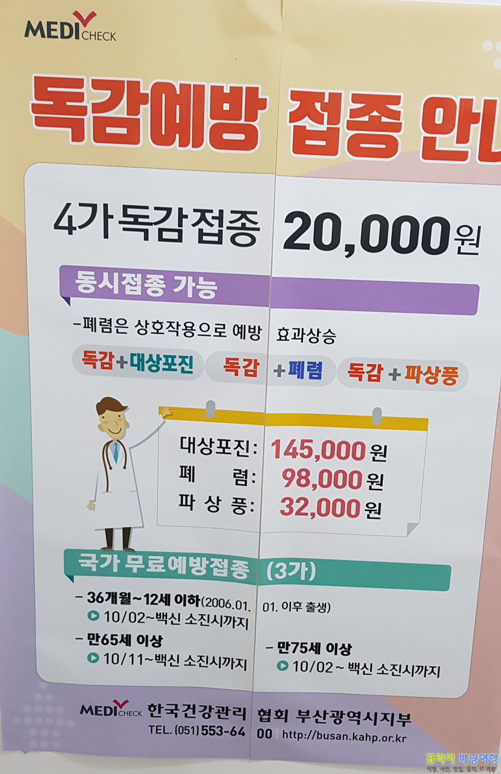 독감 무료접종 대상 및 일정