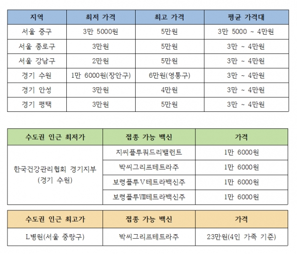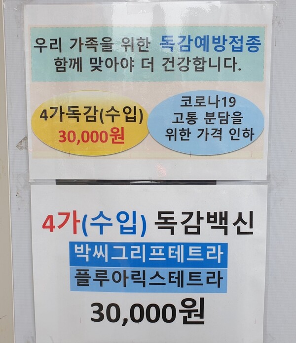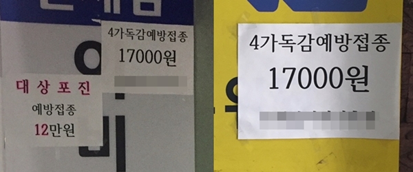4가 독감백신 가격이 병원마다 다른데요?