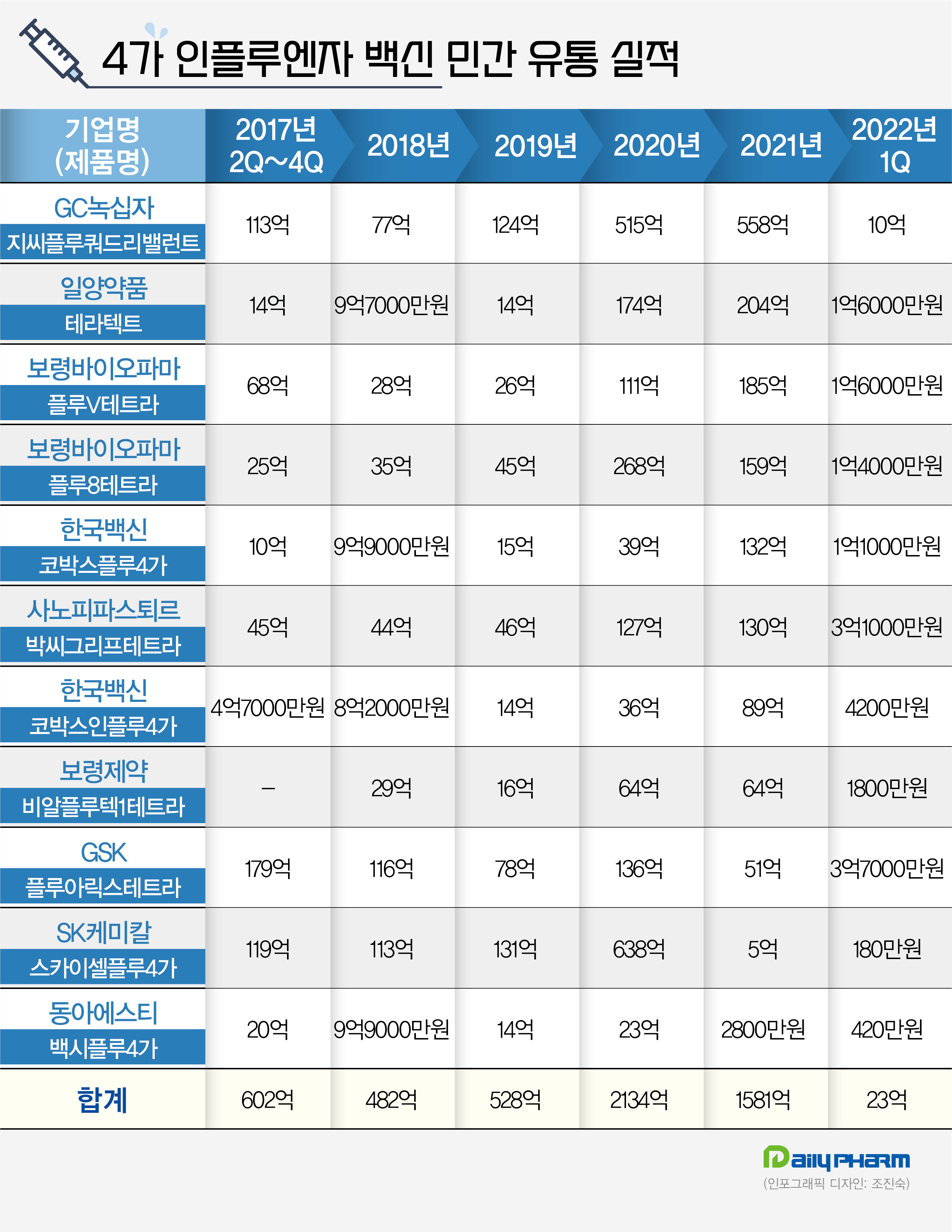 국내 제약사(보령바이오파마 2 품목, 보령제약, GC녹십자, 한국백신 2품목, 일양약품) 7 품목과